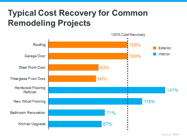 The 2022 Remodeling Impact Report from the National Association of Realtors (NAR) highlights popular home improvements and what sort of return they bring for the investment (see graph below):