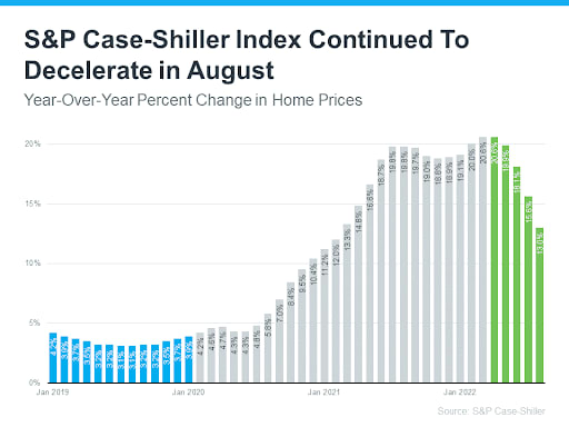 This deceleration is happening because higher mortgage rates are moderating demand, and as a result, easing the buyer competition and bidding wars that previously drove prices up.