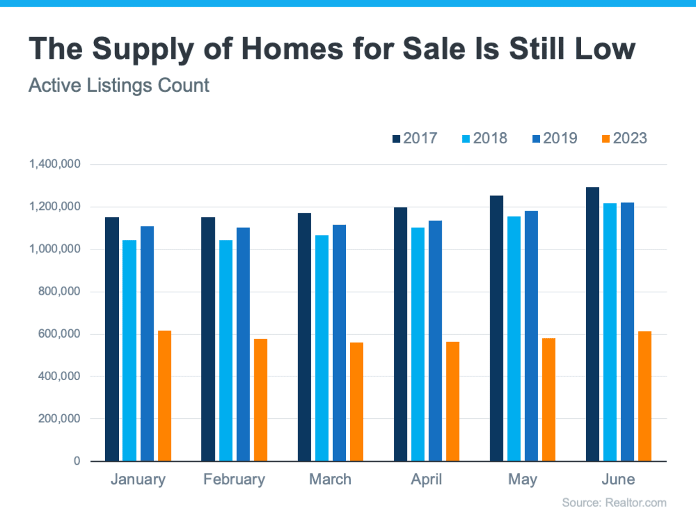 One of the biggest challenges in the housing market right now is how few homes there are for sale compared to the number of people who want to buy them. To help emphasize just how limited housing inventory still is, let’s take a look at the latest information on active listings, or homes for sale in a given month, as it compares to more normal levels.