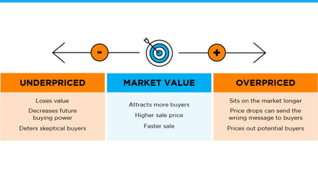 If it’s priced too high, you run the risk of deterring buyers.When that happens, you may have to lower the price to drive interest when your house sits on the market for a while. But be aware that a price drop can be seen as a red flag by some buyers who will wonder what it means about the home.
